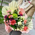 Набор из мягкой игрушки, конфет и 21 тюльпана