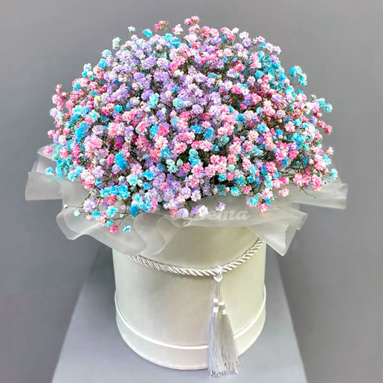 5 разноцветных гипсофил в коробке
