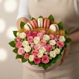 Большая корзина роз с гвоздиками