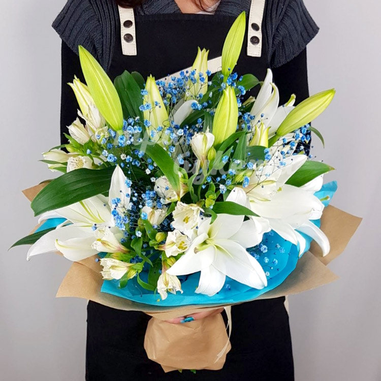 Букет из лилий и альстромерий