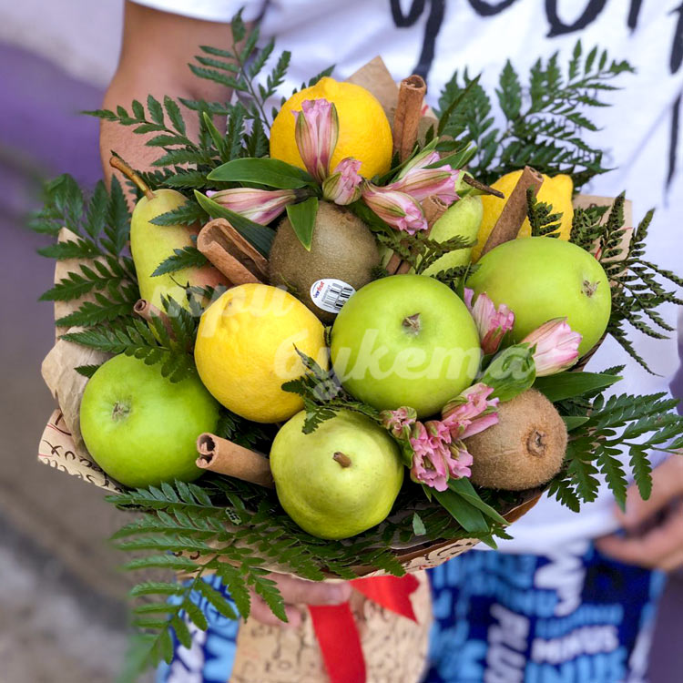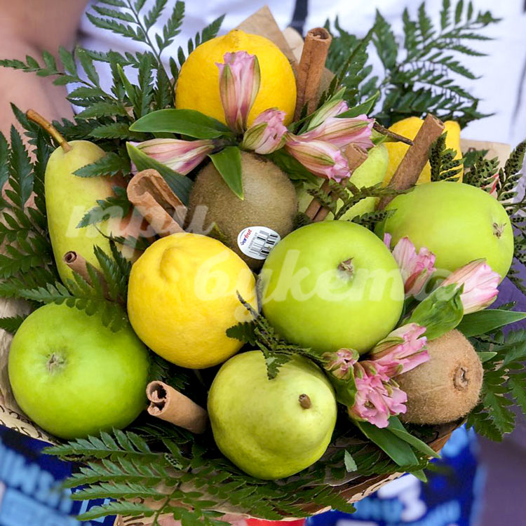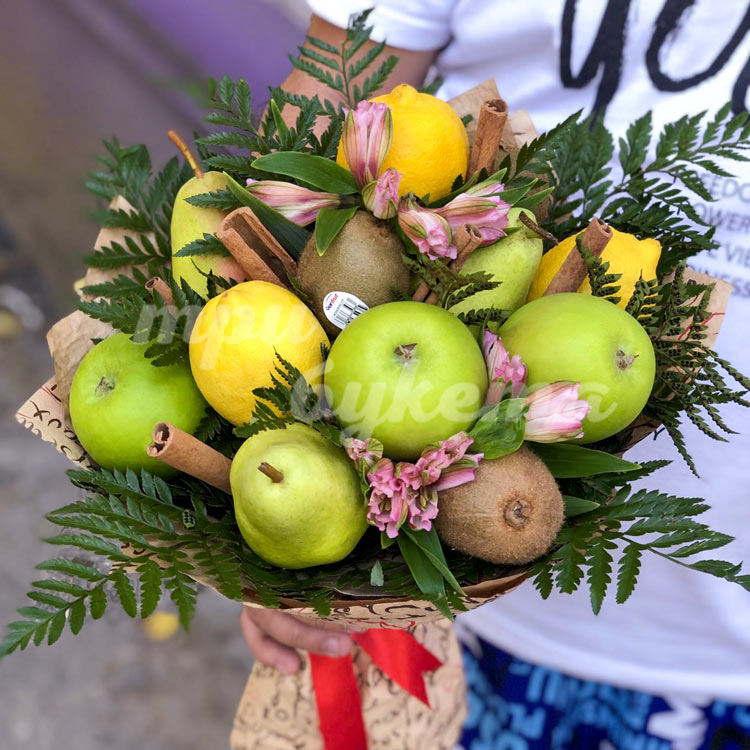 Букет из яблок, груш и лимонов