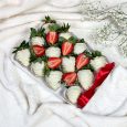 Букет красных и белых роз в крафте