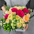 Коробка пионов с эвкалиптом