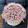 Корзина белых эустом и розовых роз