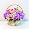 Корзина розовых гербер и лимониума