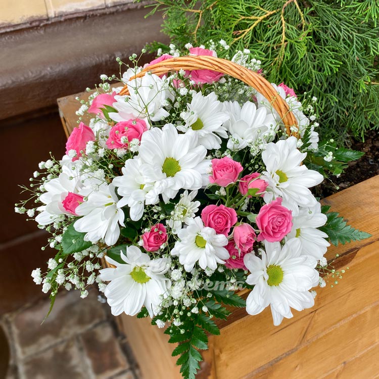 Корзина белых хризантем