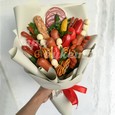 Красный букет тюльпанов и эустом