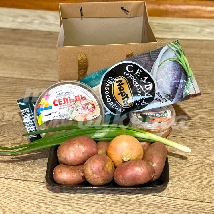 - Сельдь слабосоленая (300 гр), 1 шт.
