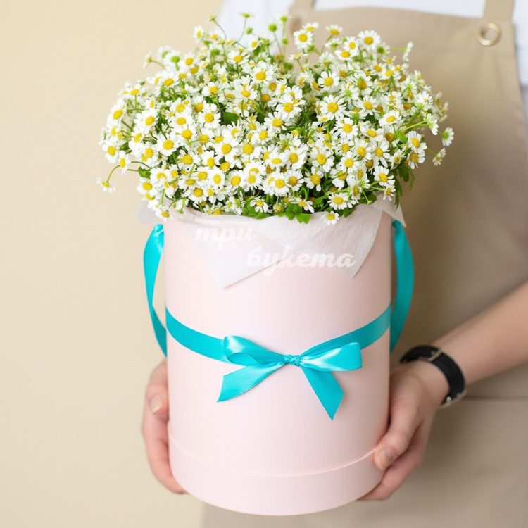Полевые ромашки в шляпной коробке