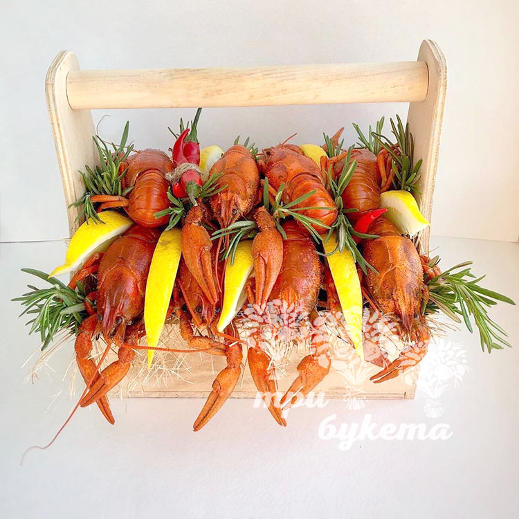 Раки и лимон в ящике
