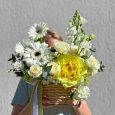 Желтые розы в плетеной корзине